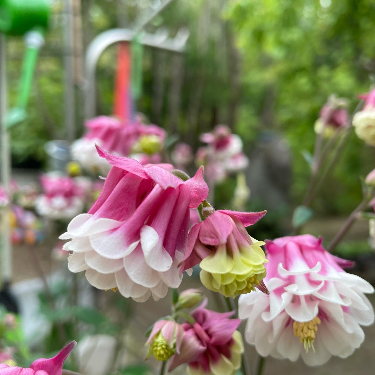 お姫様のスカートみたいなお花咲きました🌸 八重のオダマキらしいです。 可愛いでしょ❣️ #オダマキ #結婚式着物 #結婚式およばれきもの #着物でおでかけ #ハナヘナ #白髪染め #ノワール