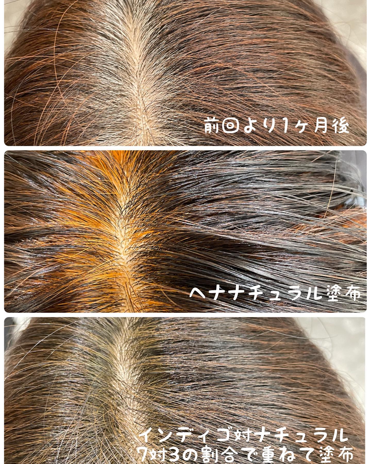一年程前からケミカルカラーから天然ヘナに変更されたお客様。 髪が若々しいと言われるそう❣️ #ハナヘナ#ナチュラルヘナ#インディゴ #痛まない白髪染め#西大寺駅近#ヘナ #ノワール